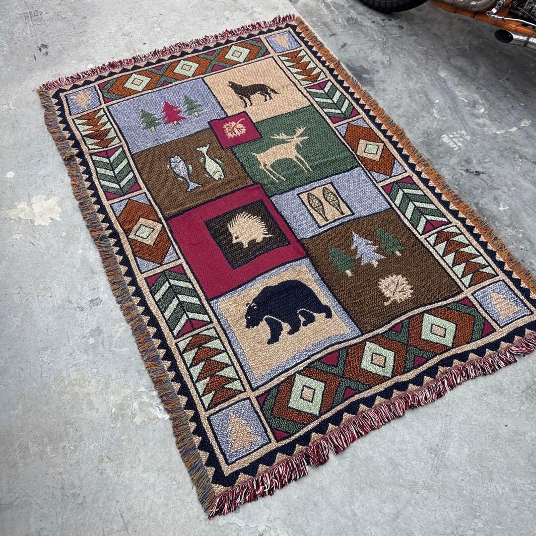 ハリネズミ ヘラジカ オオカミ クマ マルチカバー ラグ 185x125