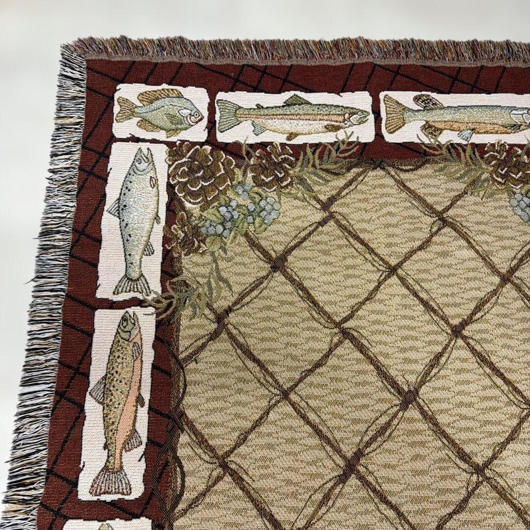 釣り 魚 マルチカバー ソファカバー ヴィンテージラグ178x130
