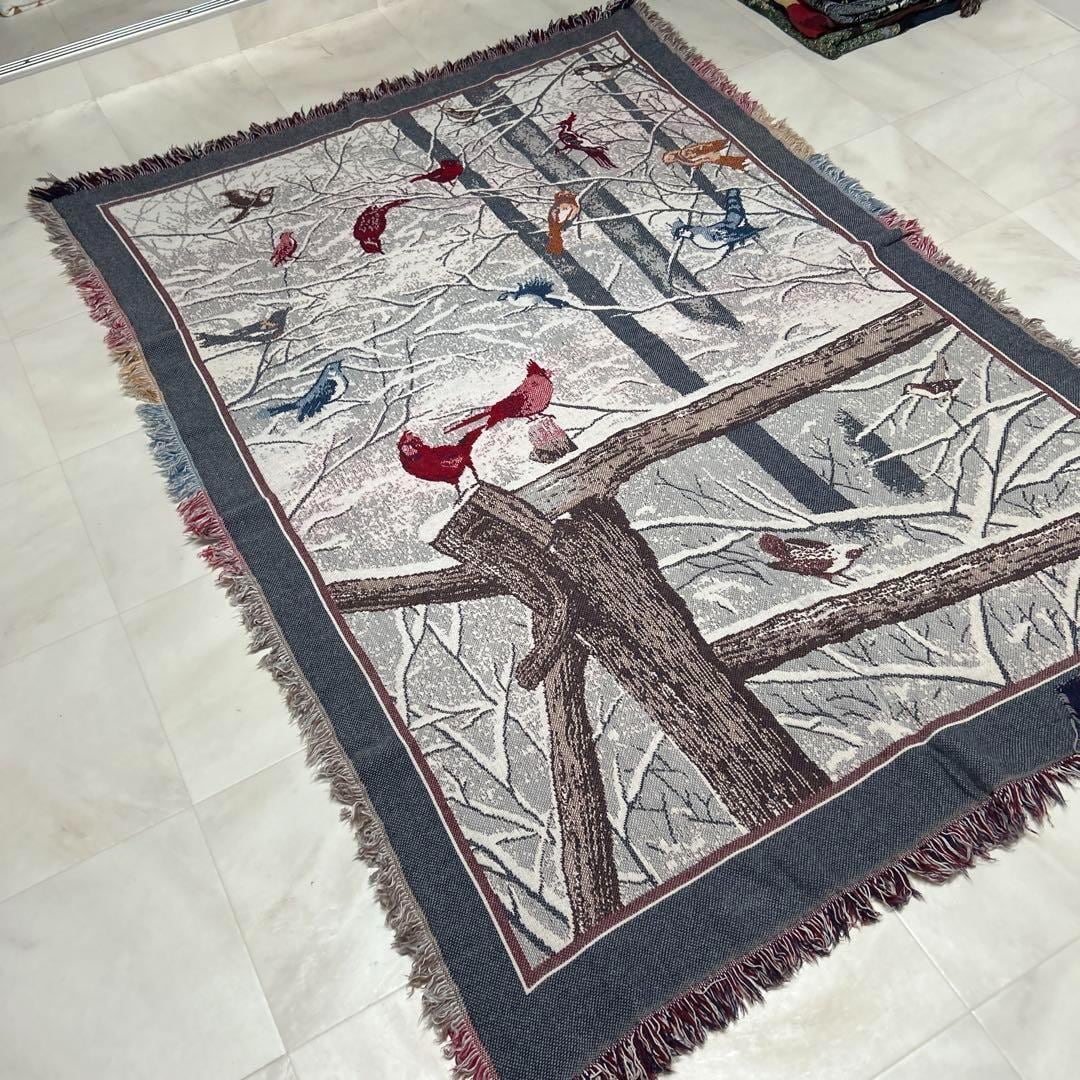 鳥 雪 マルチカバー ソファーカバー ヴィンテージラグ 174x124