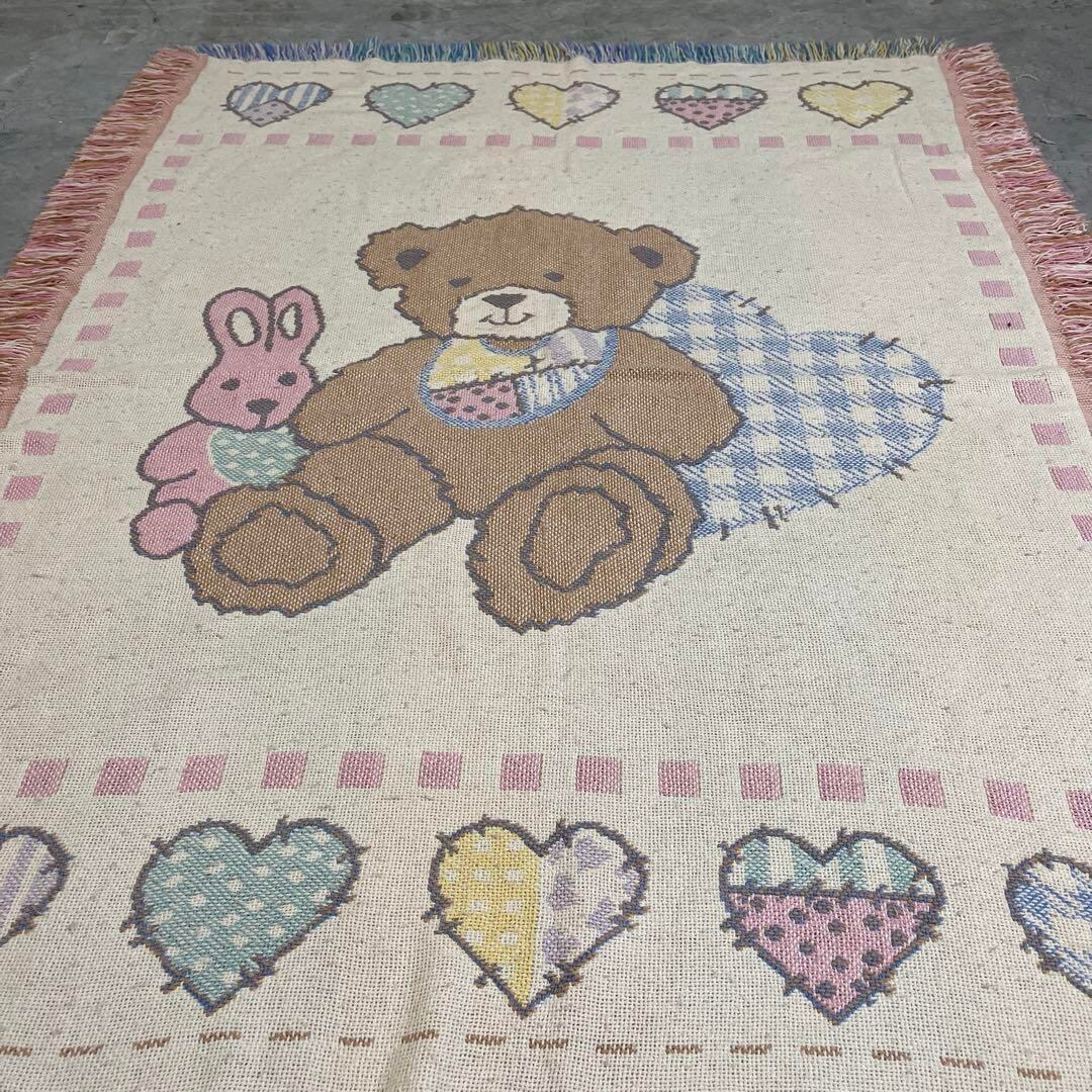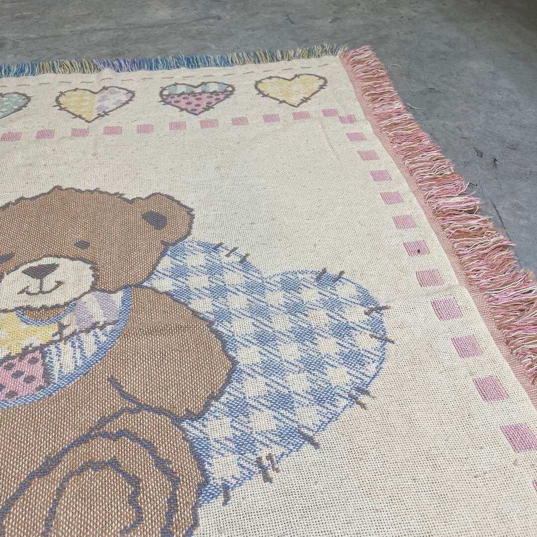 クマ パッチワーク風 ハート マルチカバー ビンテージラグ 128x102