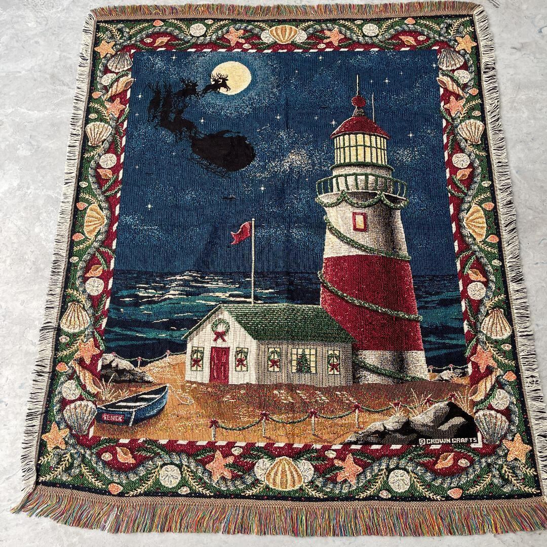 灯台 クリスマス サンタクロース マルチカバー ビンテージラグ 150x123