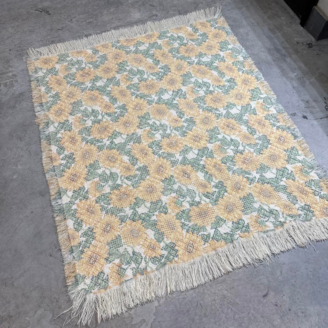 花 ひまわり 向日葵 アート マルチカバー ビンテージラグ 150x120