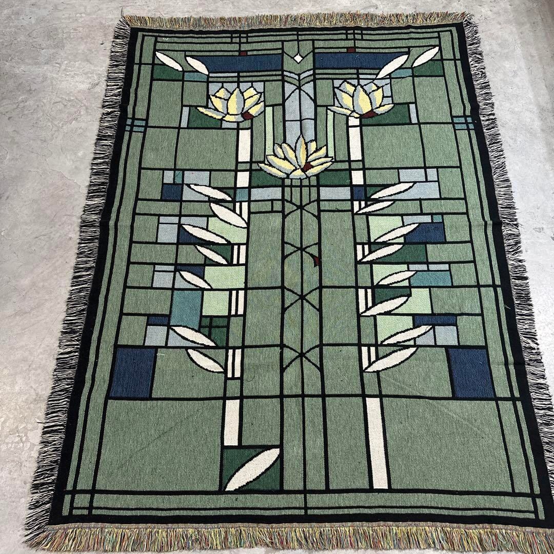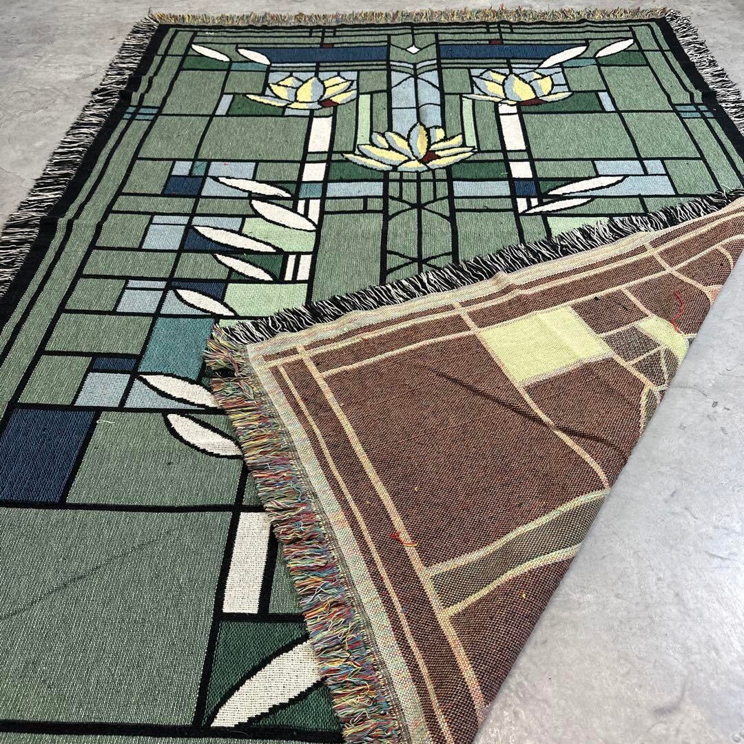 アート 花 ステンドガラス風 マルチカバー ビンテージラグ 177x133