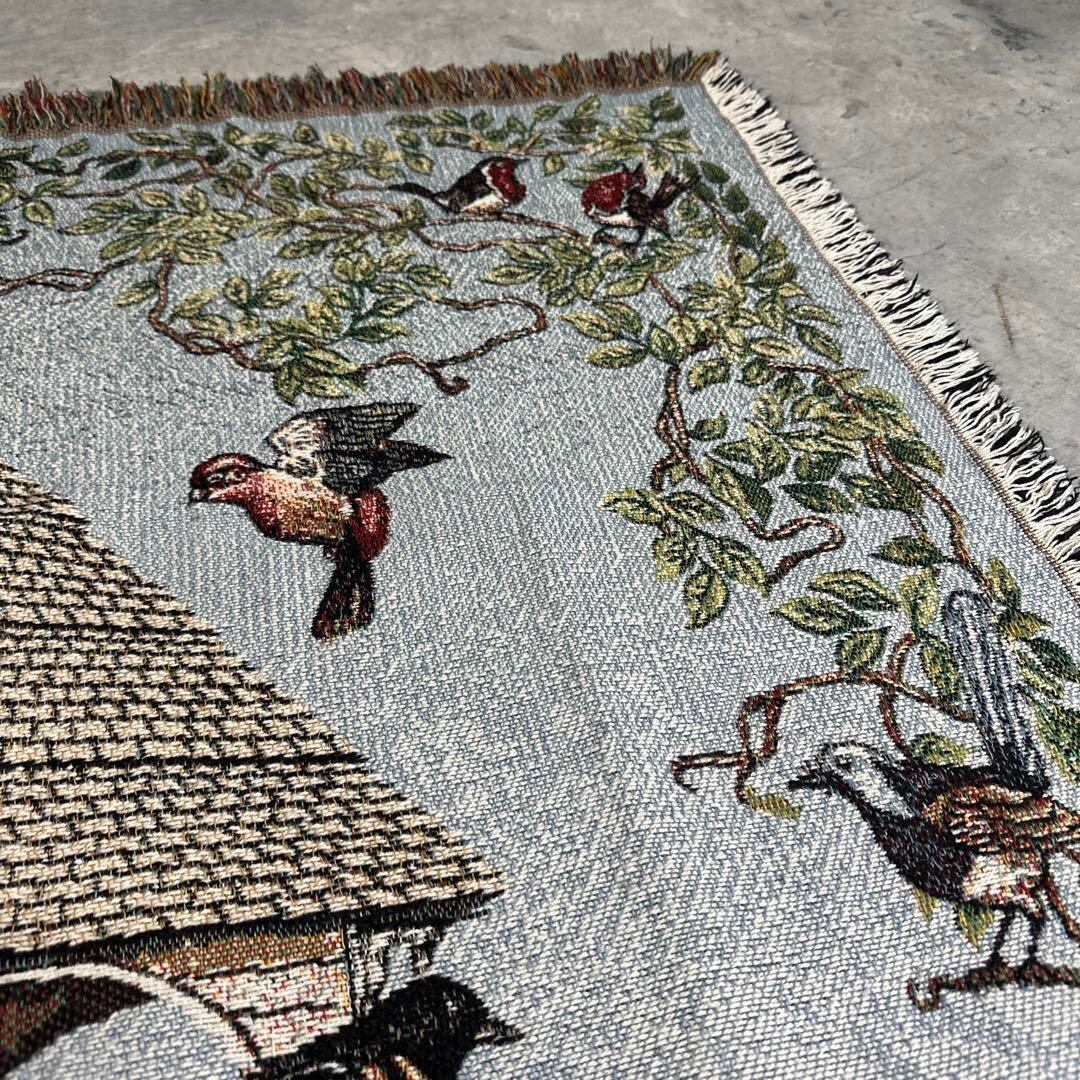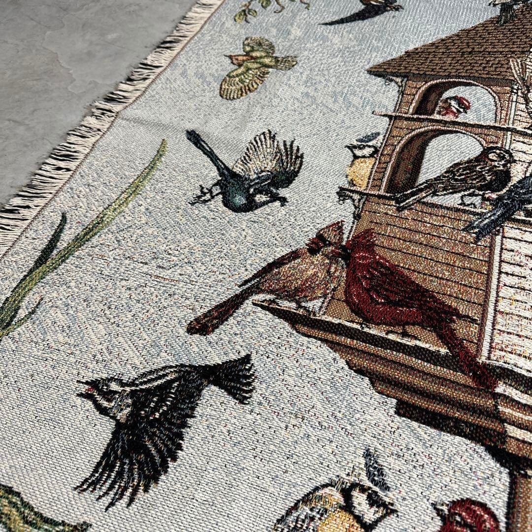 野鳥 マルチカバー ビンテージラグ 176x112