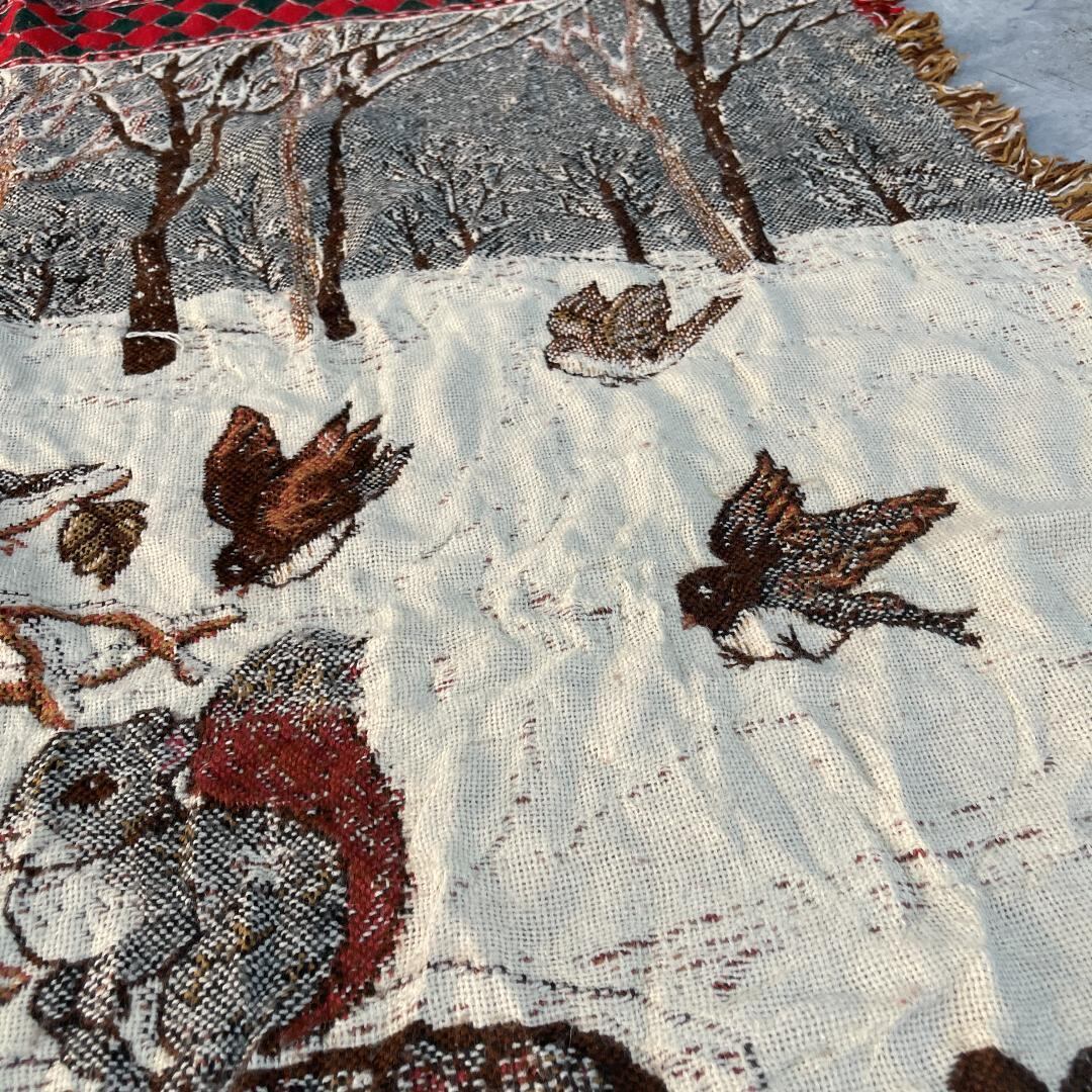 うさぎ りす 鳥 マルチカバー ビンテージラグ 140x110