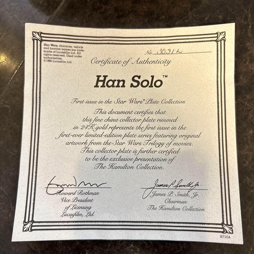 ビンテージ スターウォーズ ハンソロ ハリソンフォード 飾り皿 陶器皿