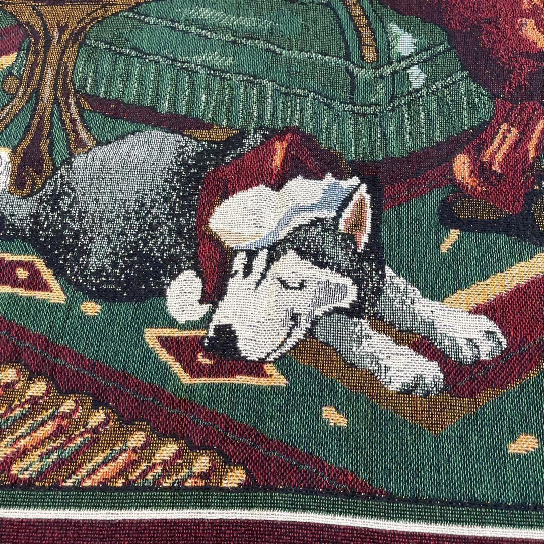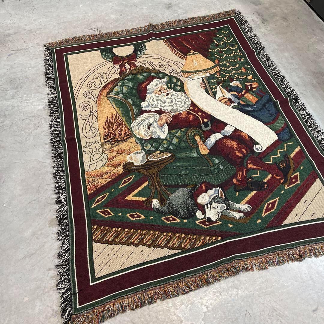 サンタクロース クリスマス ビンテージラグ 172x134 ハスキー 犬 ヴィンテージ