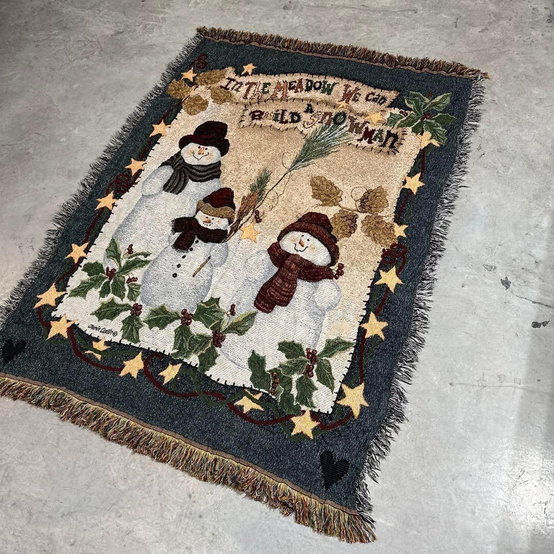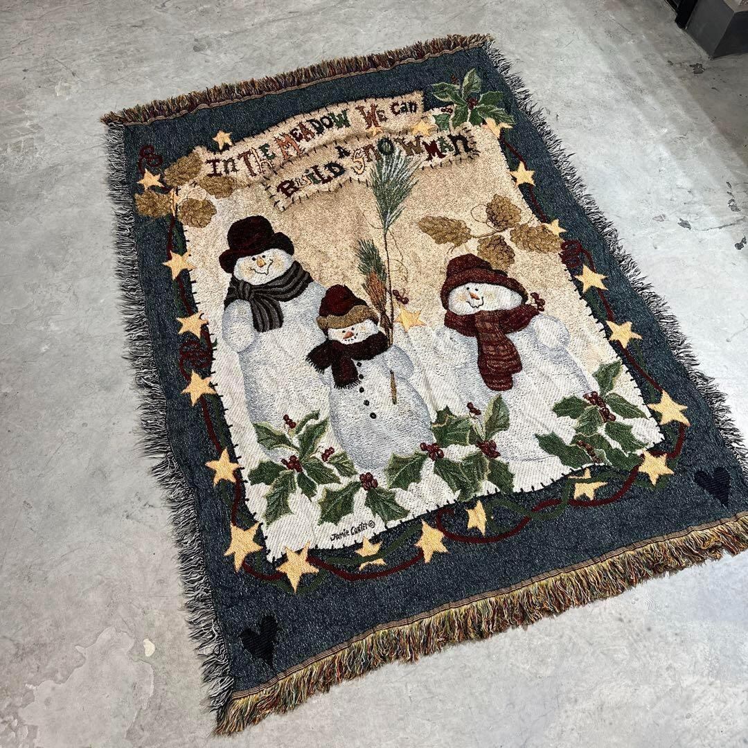 スノーマン 雪だるま マルチ・ソファカバービンテージラグ 142x108