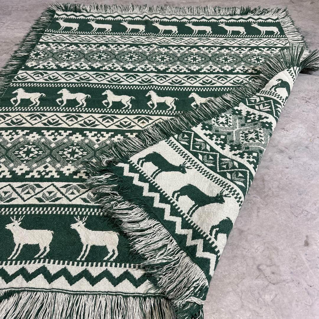 アート ウマ シカ マルチカバー ソファーカバー ビンテージラグ 135x111