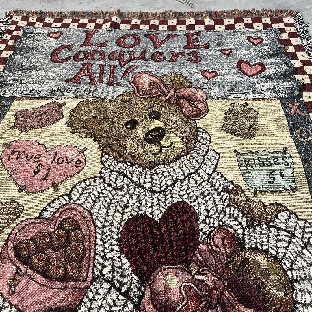 クマ ハート チョコ マルチカバー ビンテージラグ 168x127
