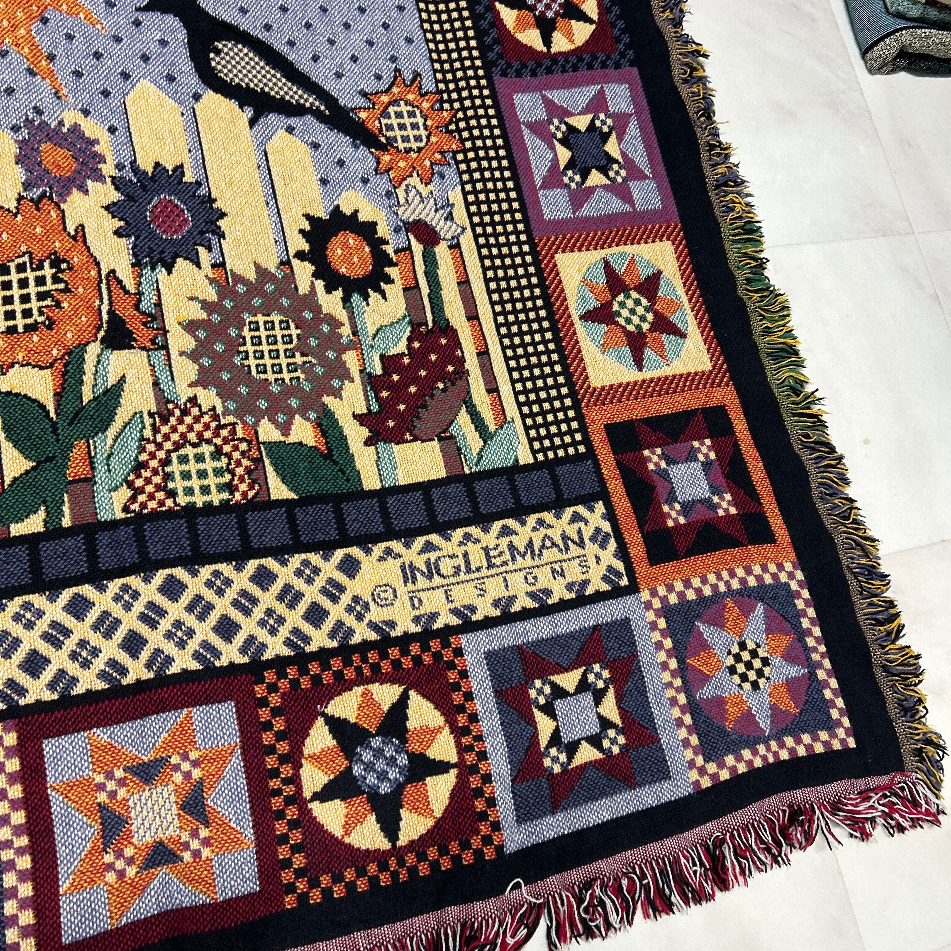 花 ひまわり マルチカバー ソファーカバー ヴィンテージラグ 174x123