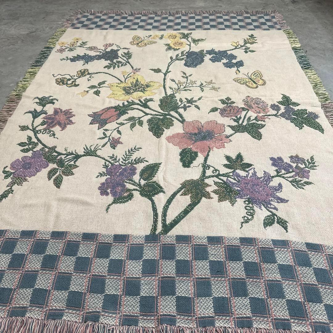 花 蝶々 マルチカバー ソファーカバー ビンテージラグ 176x122