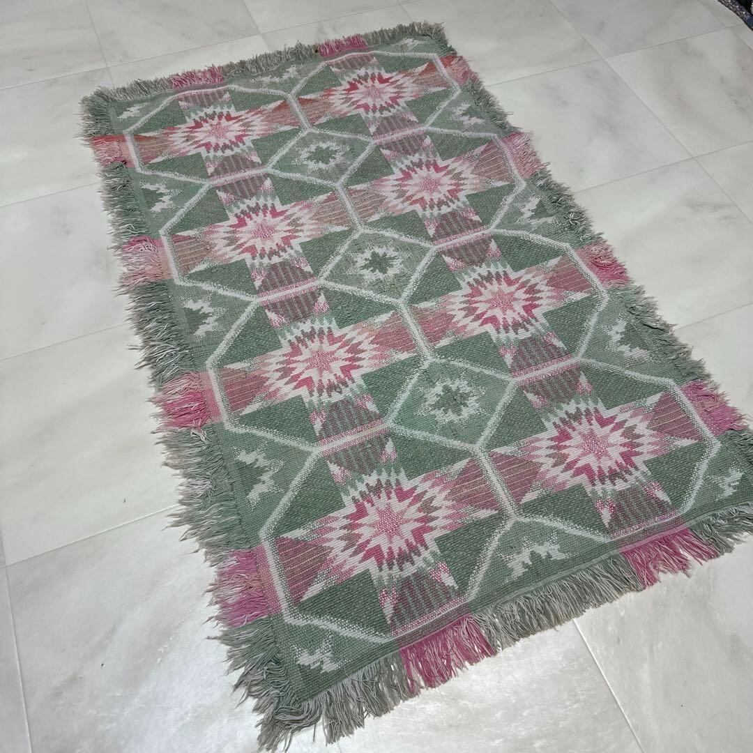 リバーシブル 花 マット マルチカバー ビンテージラグ 115x75