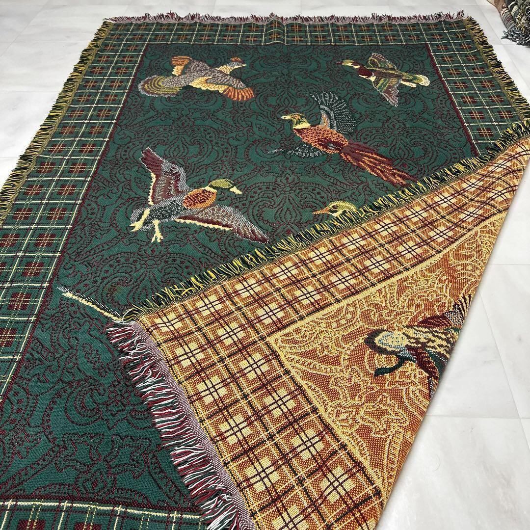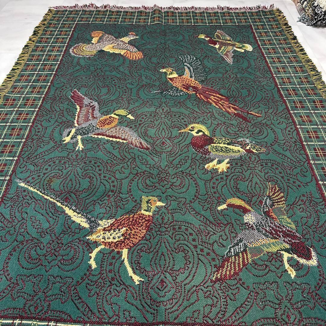 キジ カモ 鴨 マルチカバー ソファーカバー ビンテージラグ 176x122