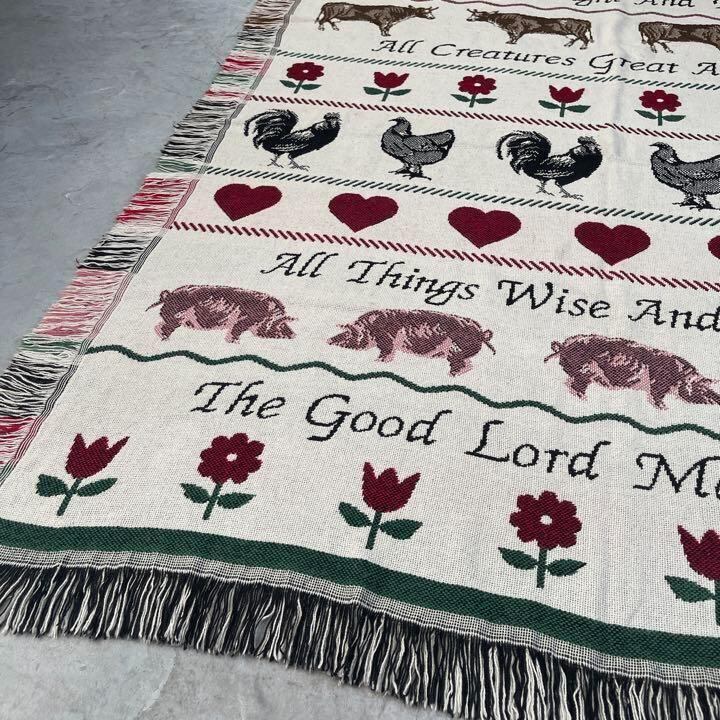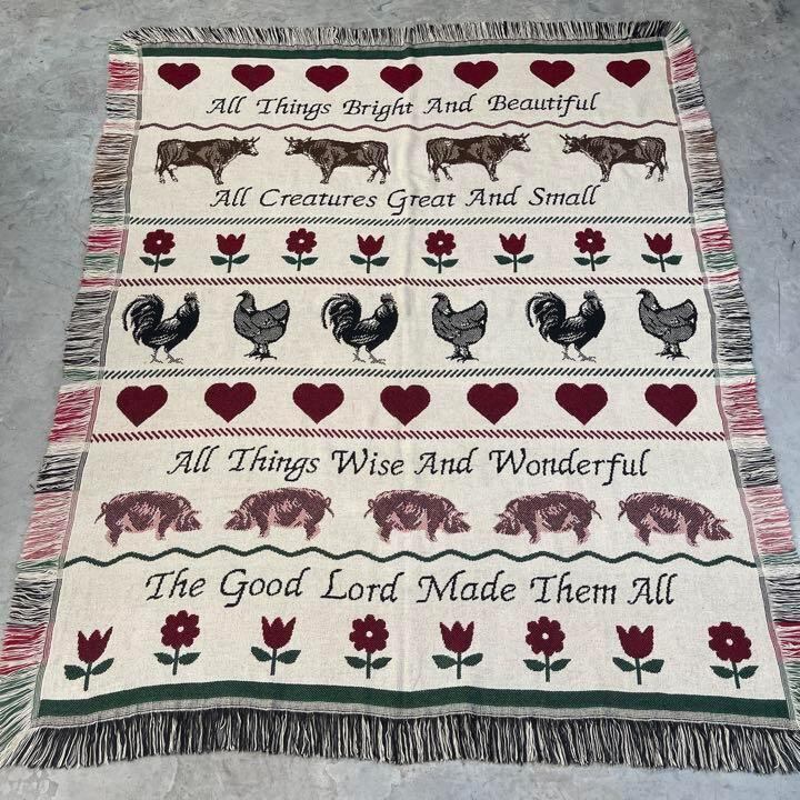ブタ ニワトリ ウシ 花 マルチカバー ソファーカバー ラグ 160x135