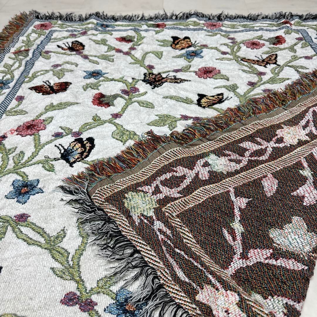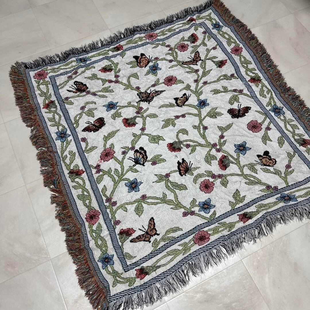 花 蝶々 マルチカバー ソファーカバー ヴィンテージラグ 116x116