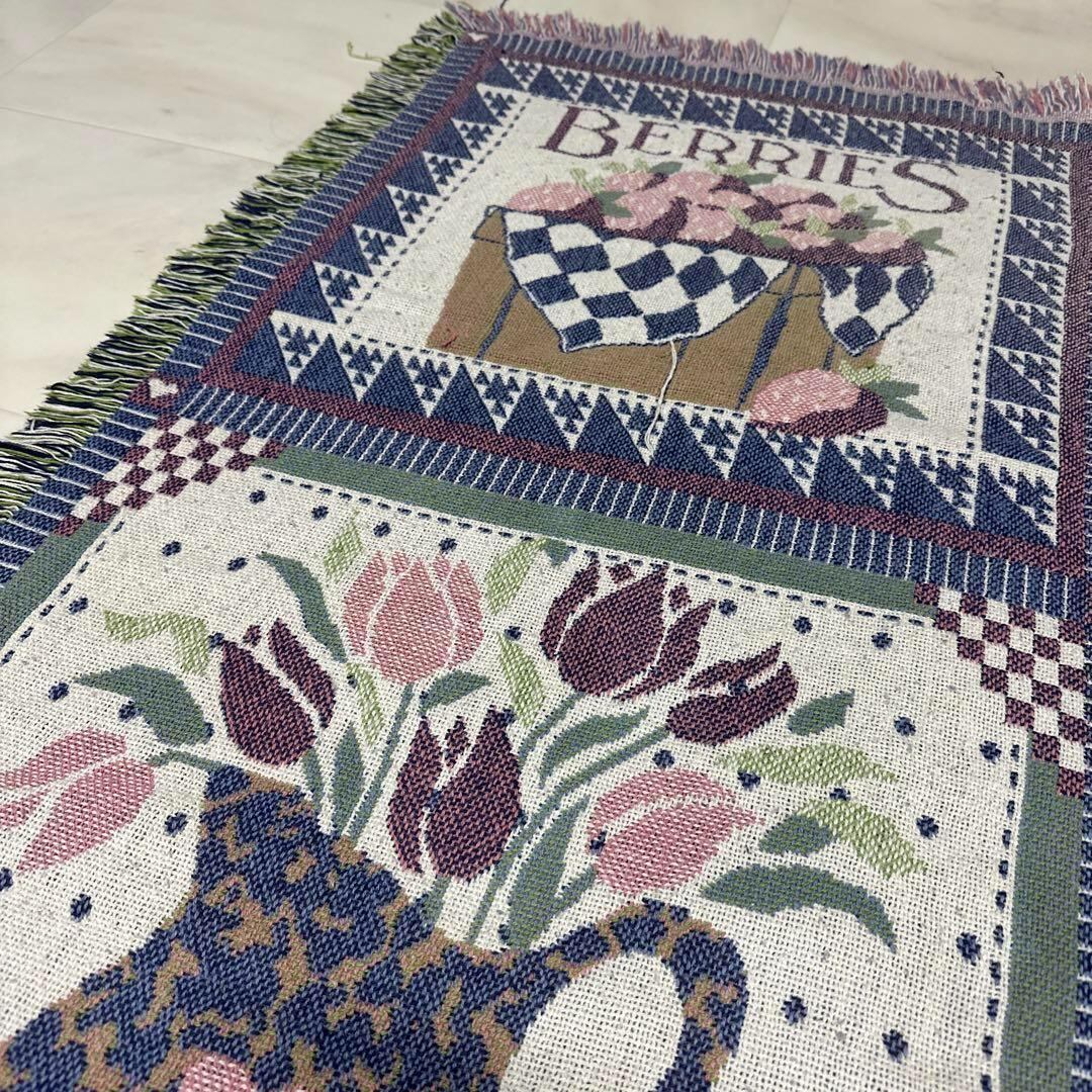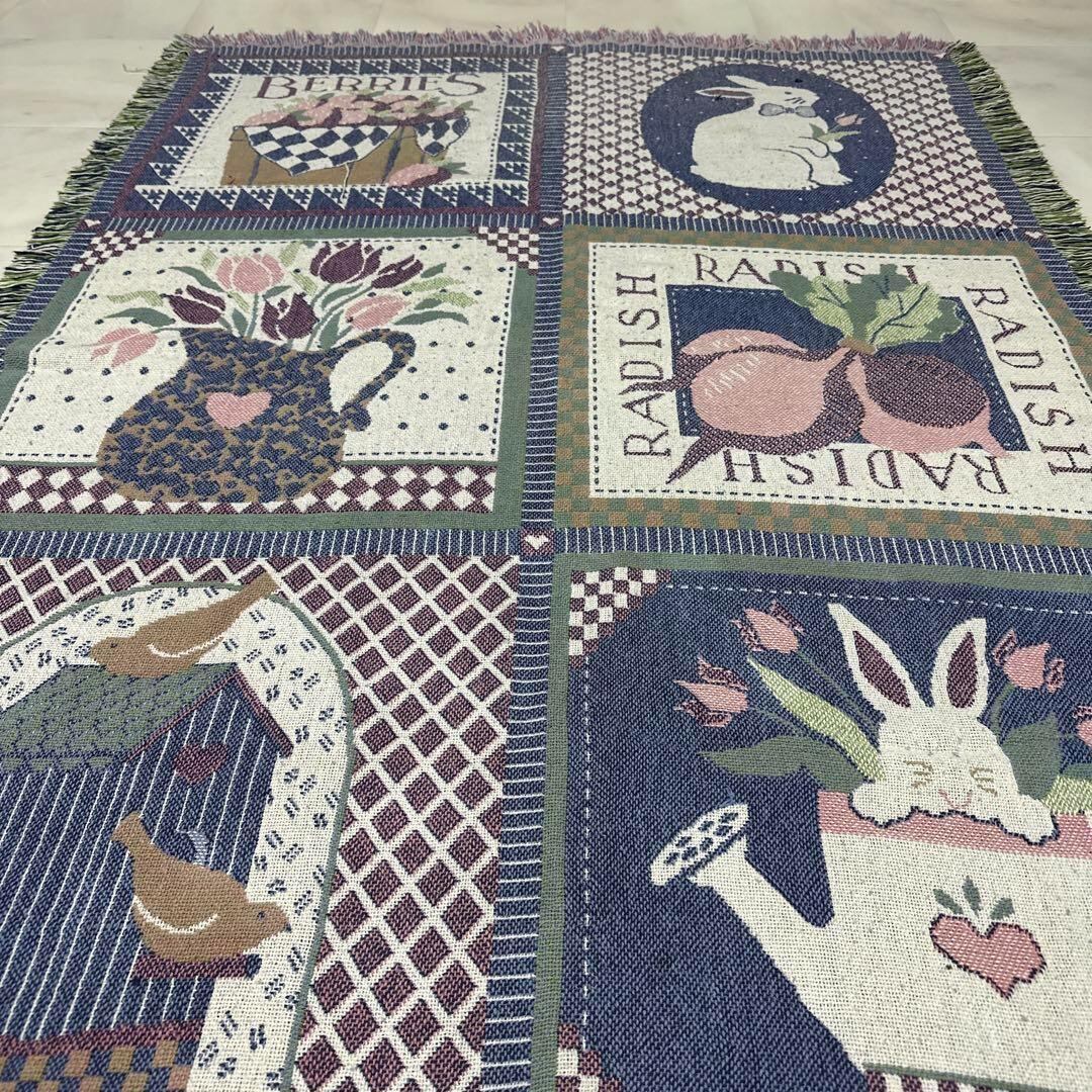うさぎ 苺 マルチカバー ソファーカバー ビンテージラグ 168x124