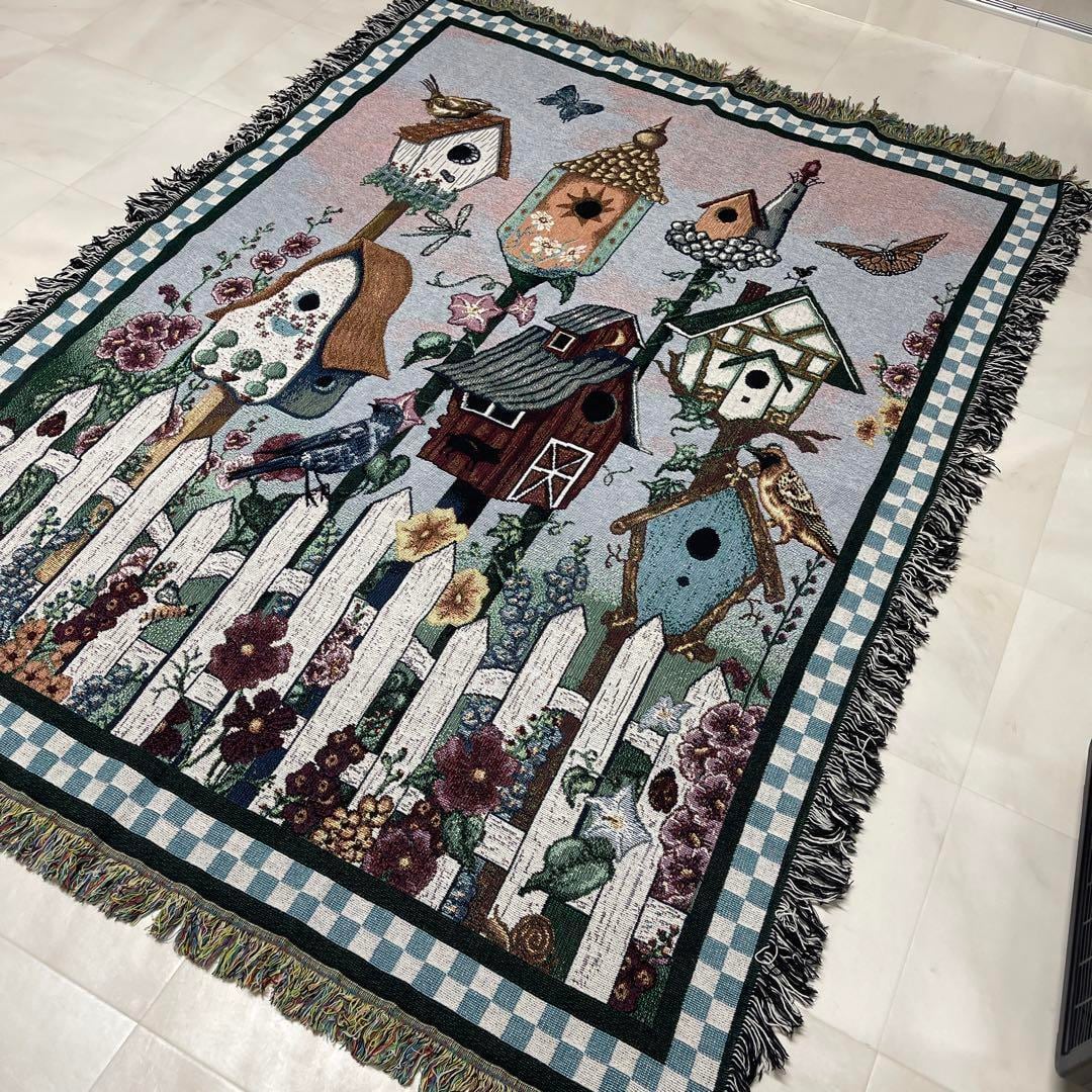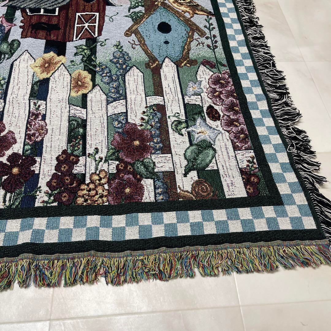 鳥小屋 蝶 花 マルチカバー ソファーカバー ヴィンテージ 175x131