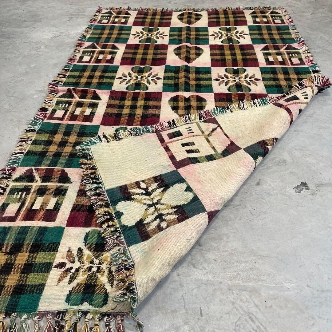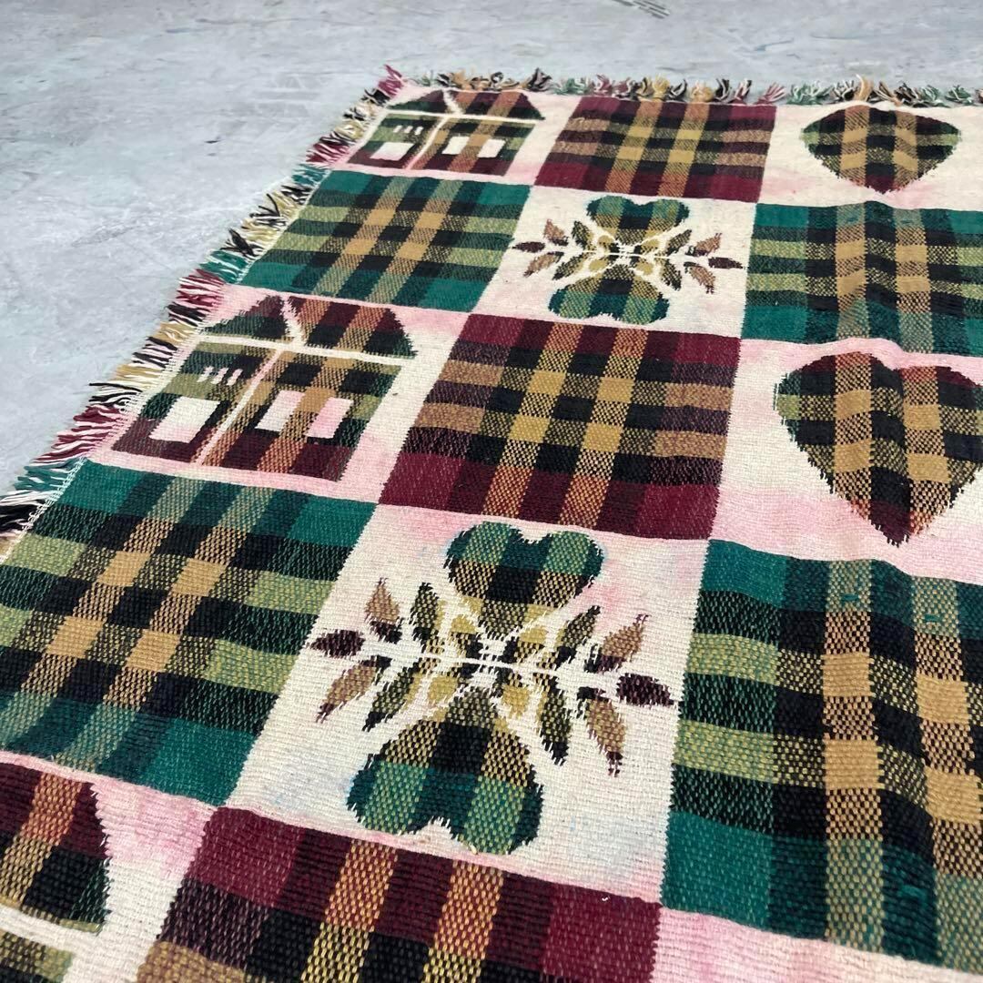チェック柄 ハート 家 マルチカバー ソファーカバー ラグ 163x101