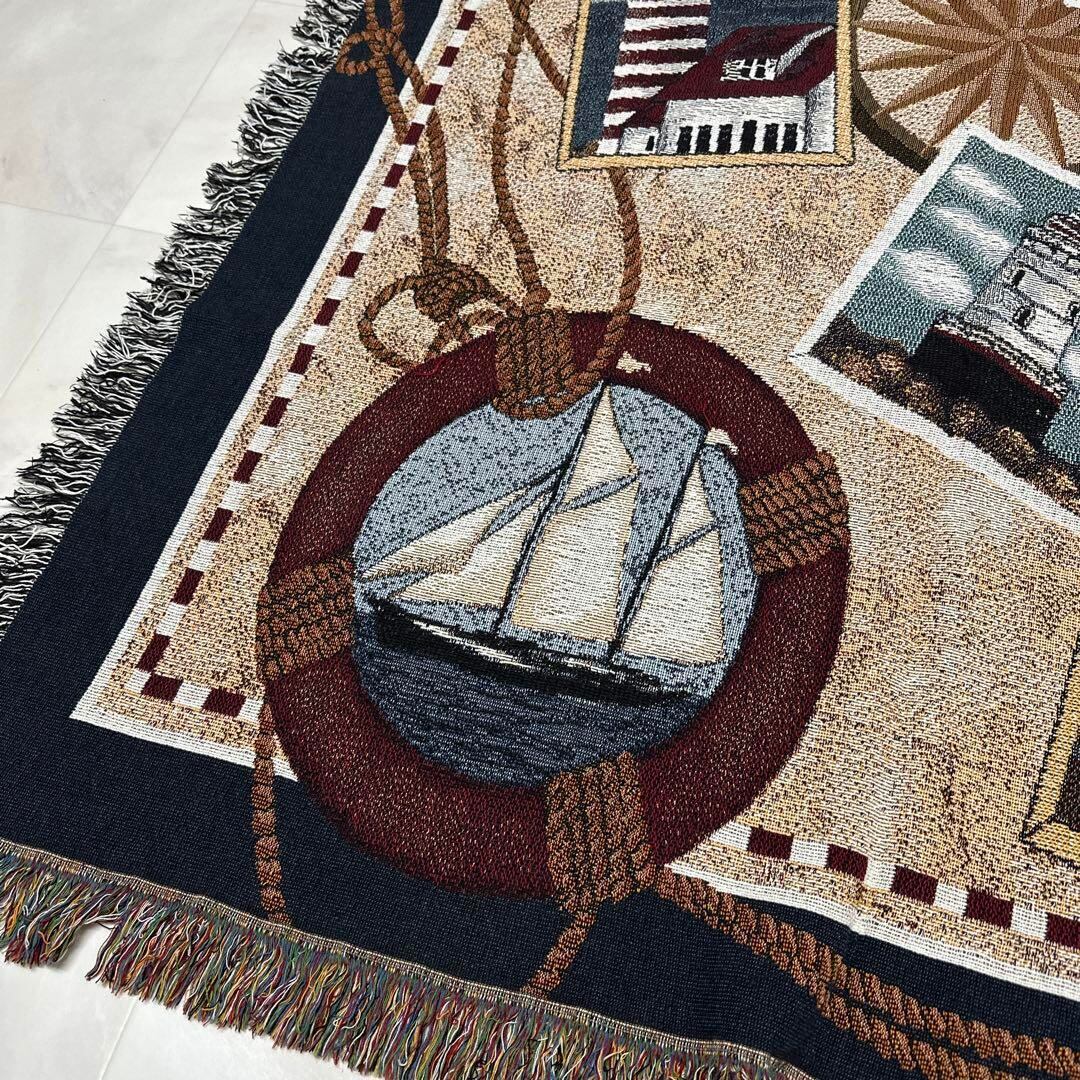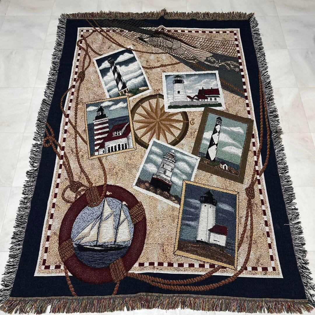 写真風 灯台 船 羅針盤 マルチカバー ソファーカバー ラグ 180x130