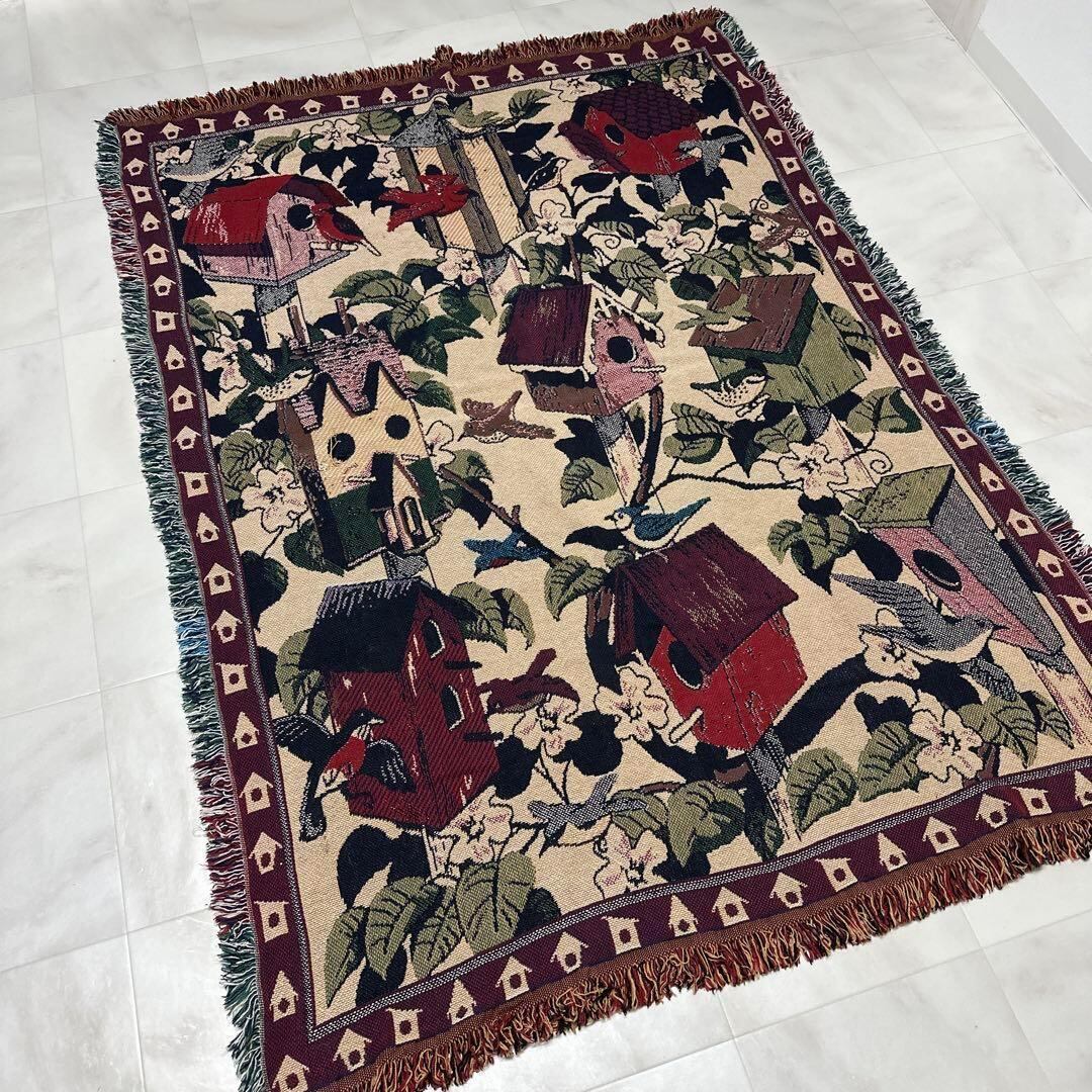鳥 巣箱 マルチカバー ソファーカバー ビンテージラグ 168x121