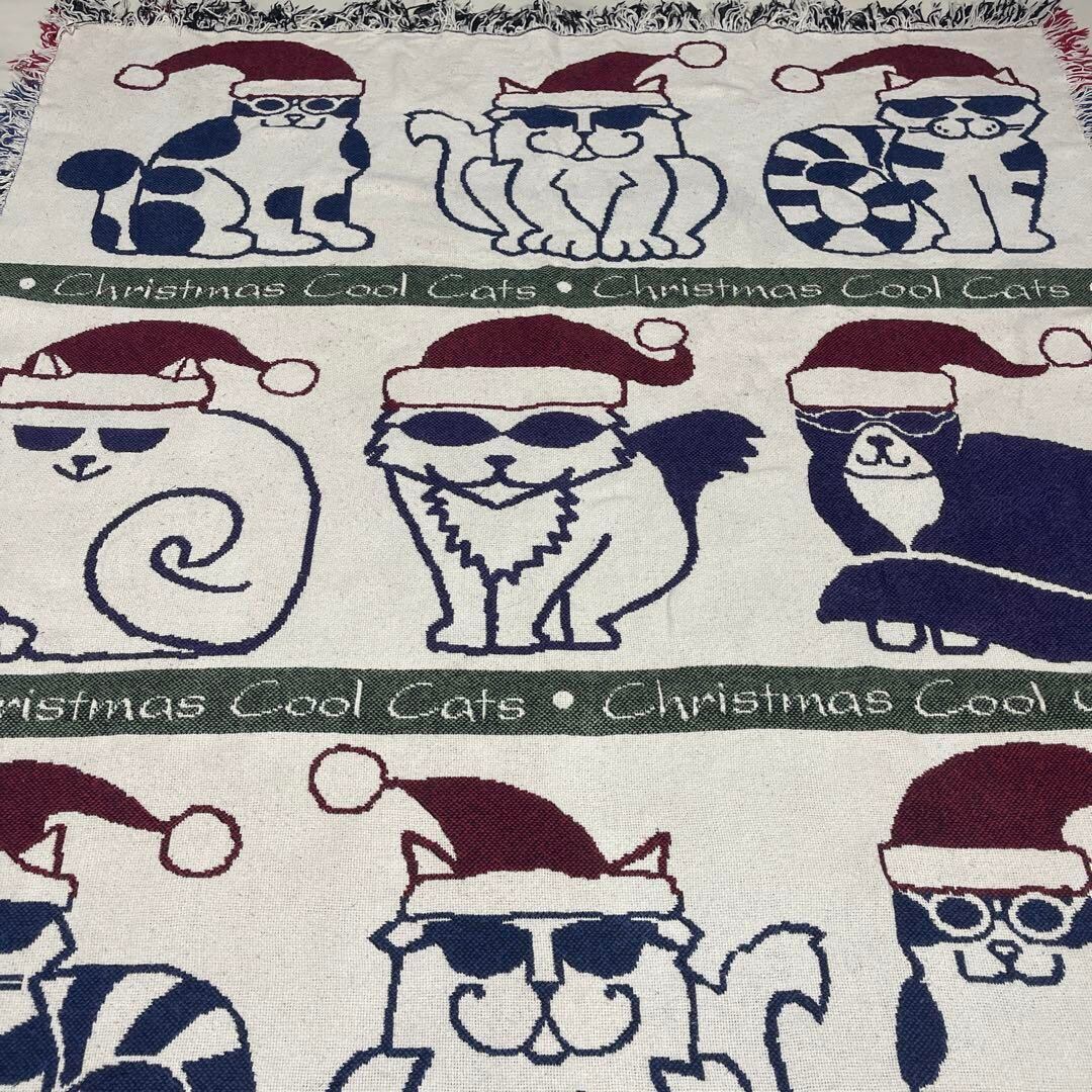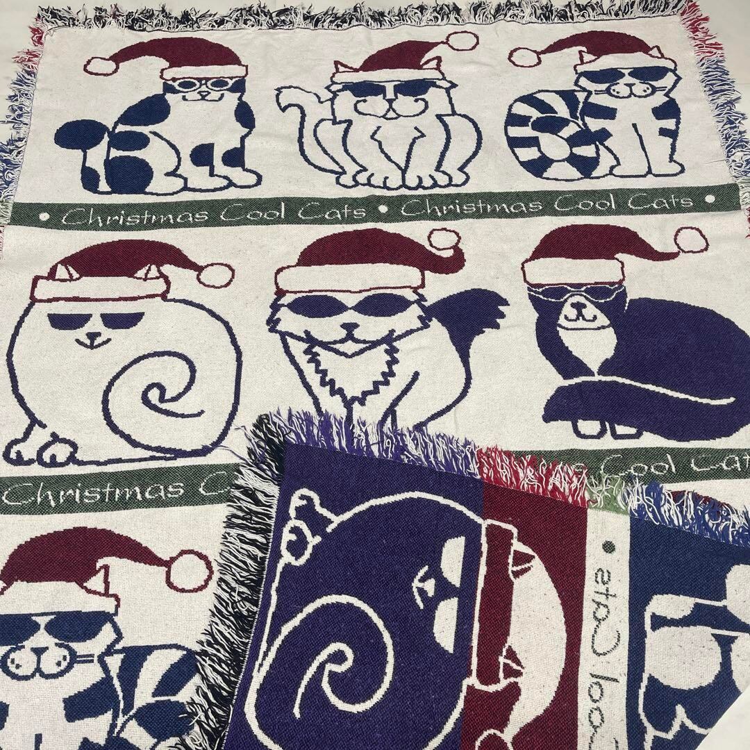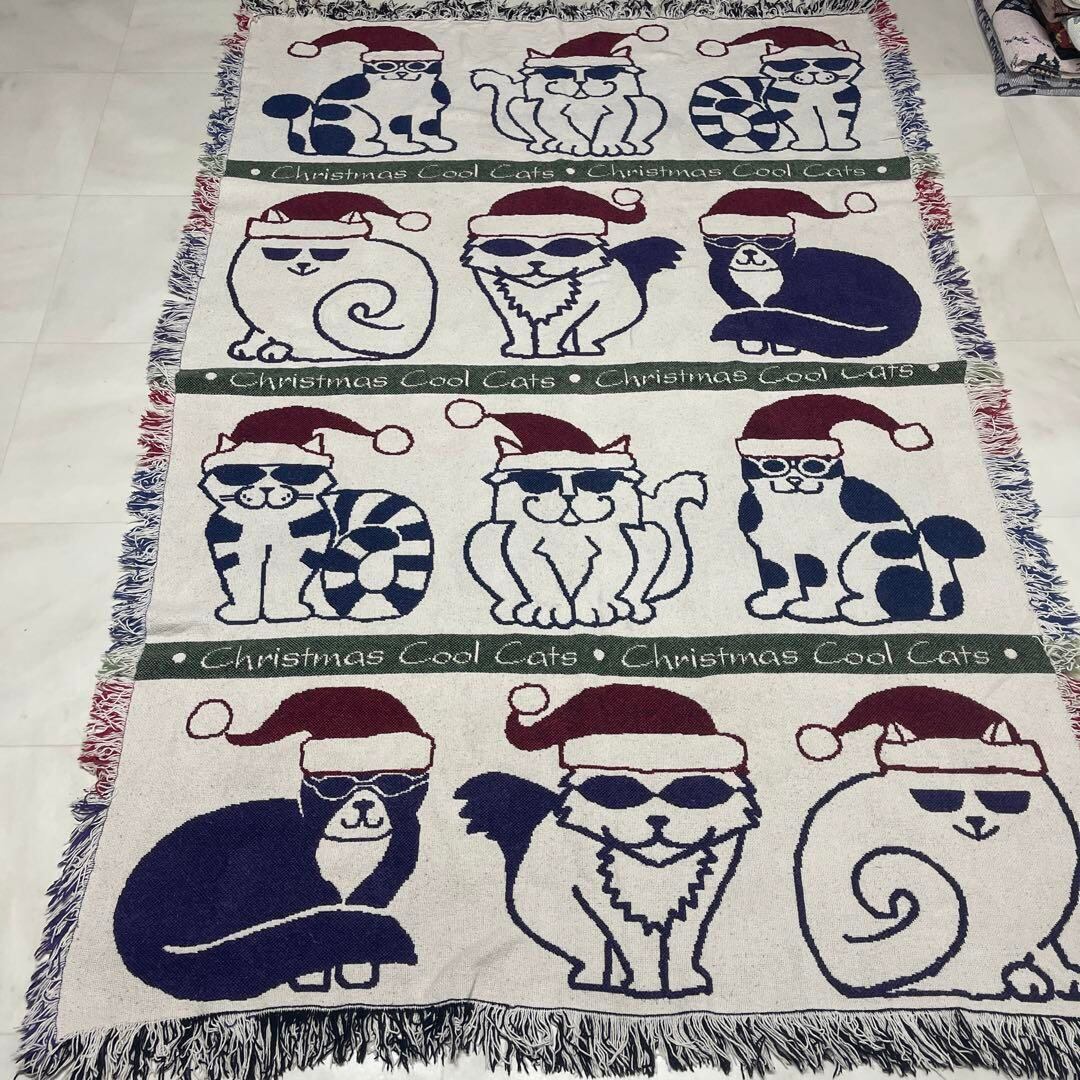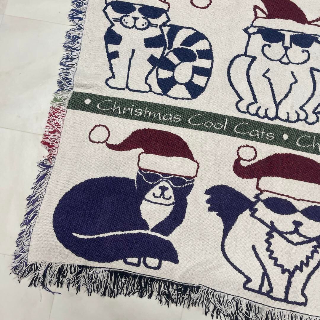 猫 クリスマス マルチカバー ソファーカバー ヴィンテージラグ 176x119