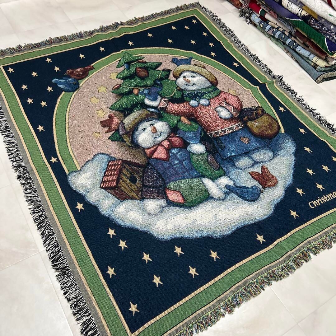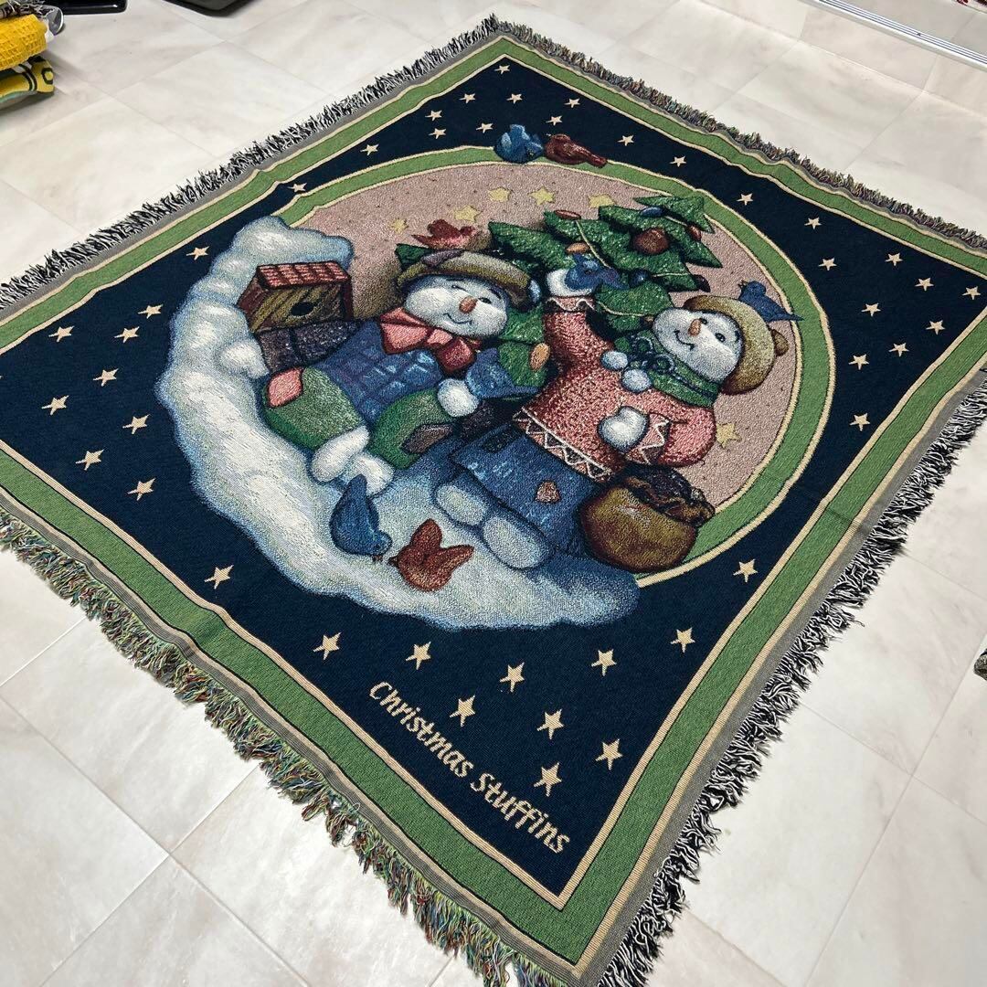 クリスマス 雪だるま マルチカバー ソファカバー ヴィンテージラグ158x135