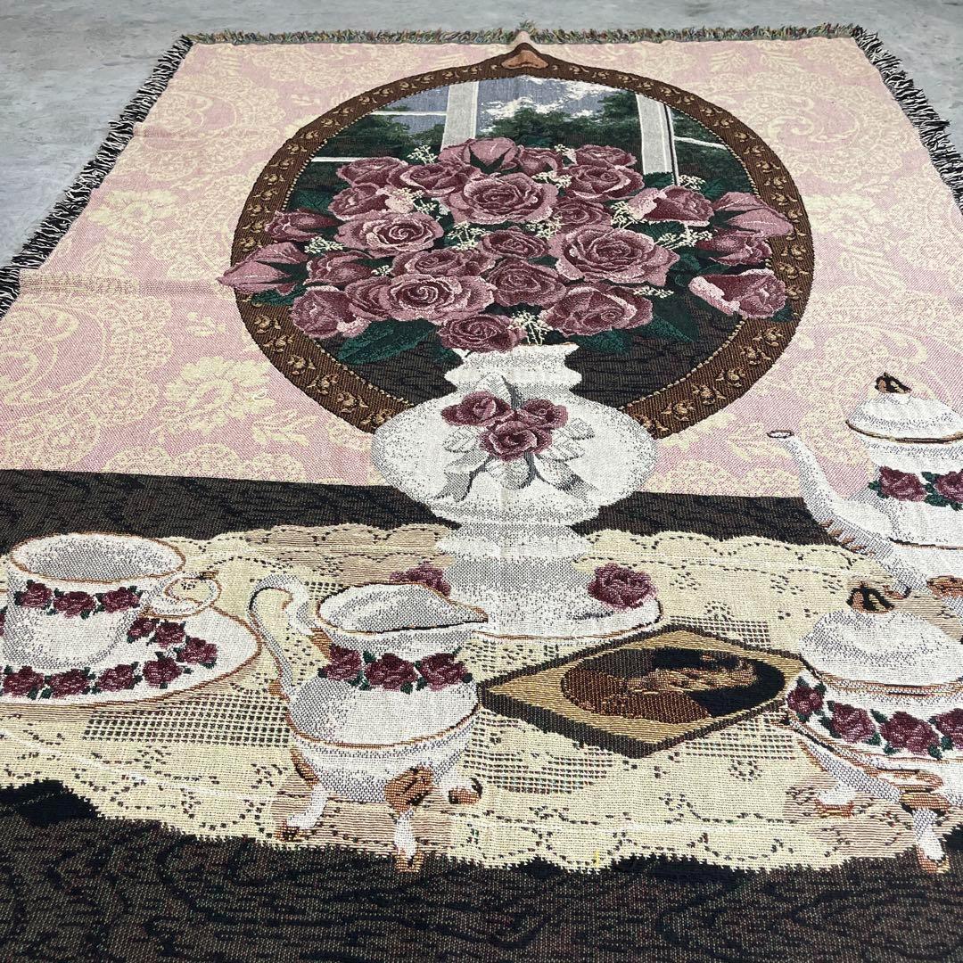 薔薇 花 ティータイム マルチカバー ソファーカバー ラグ 180x131